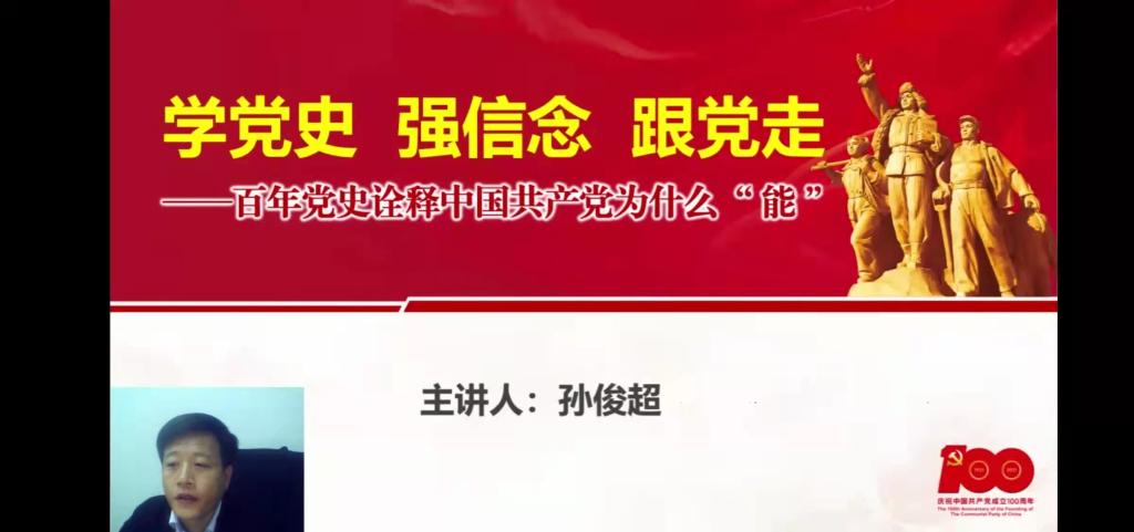 孙俊超以“学党史,强信念,跟党走——百年党史诠释中国共产党为什么‘能’”为主题开展了线上培训第一讲。他通过列举革命故事、抗战英雄等事例,从四个方面为学员上了一堂生动的党课。中国共产党之所以“能”,根基在于科学理论的指导,根本在于理想信念的坚定,根源在于人民群众的拥护,关键在于自我革命的特质。学员积极配合,课堂氛围融洽,共同回顾中国共产党百年历史,感受信仰的力量,从党的百年历史中寻找答案。