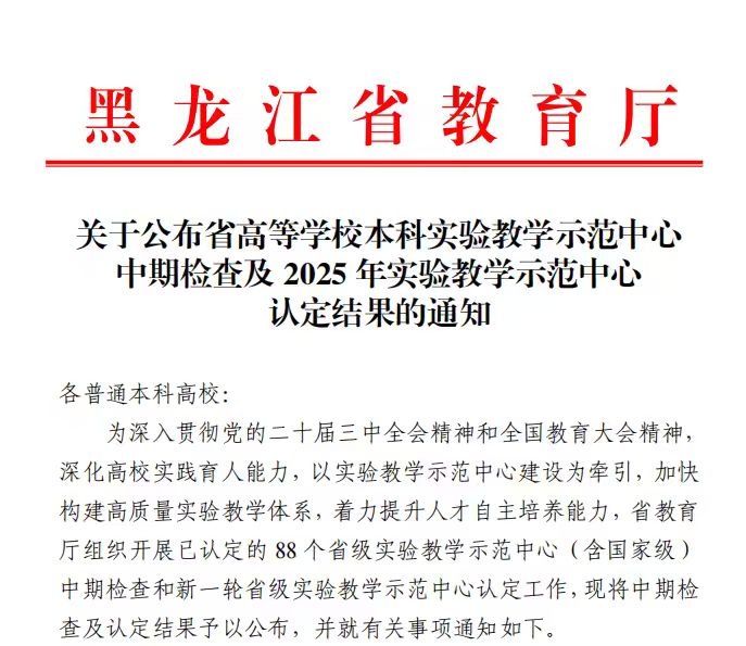 日前,黑龙江省教育厅正式公布新一批省级本科教学实验平台建设项目立项名单。我校申报的特殊教育实验教学示范中心经过严格评审,成功获批为黑龙江省本科高校实验教学示范中心立项建设单位。
