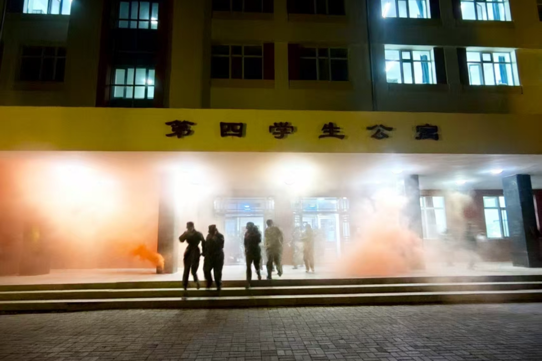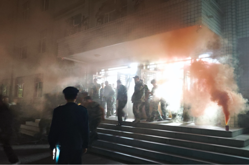 晚7时,演习正式启动。各公寓楼模拟突发火情,瞬间浓烟弥漫,消防警报急促鸣响。在疏散引导员的统一指挥下,全体学生迅速反应,用湿毛巾或口罩捂住口鼻,低头弯腰,沿预定疏散路线快速、有序撤离至室外安全区域集合。整个过程中,参演师生沉着冷静、动作规范,演练流程顺畅,各环节衔接紧密,圆满完成既定演练任务。