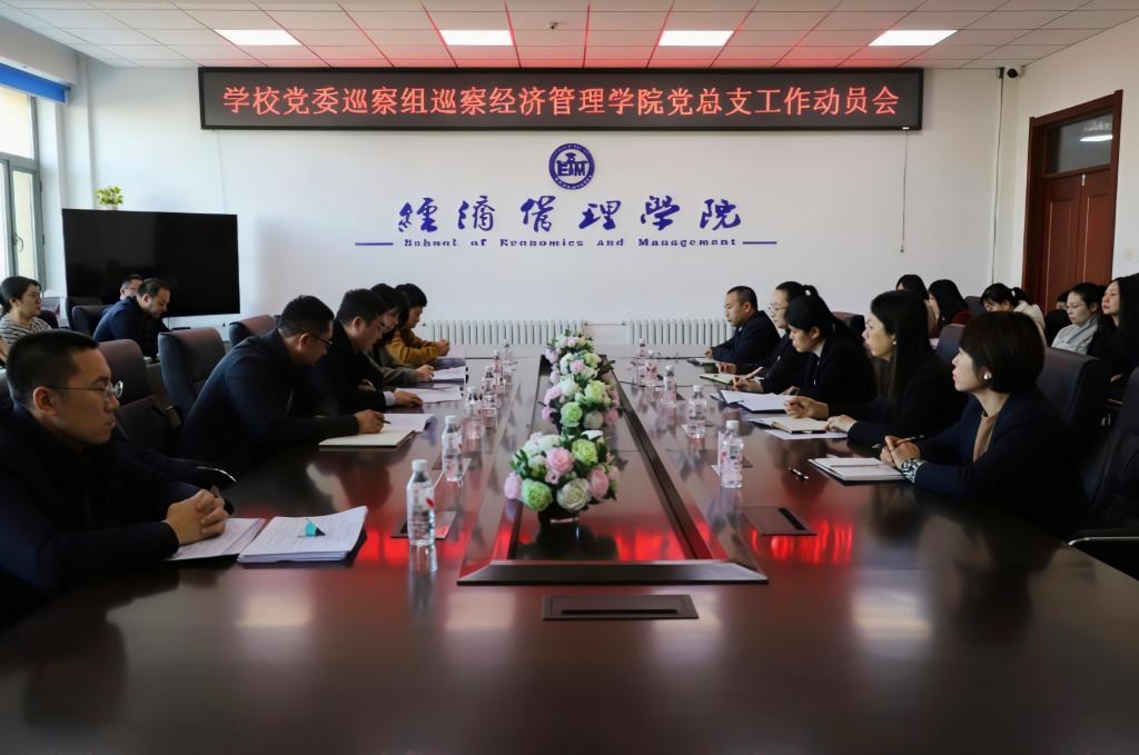 按照学校党委统一部署,10月22日下午,学校党委巡察组巡察经济管理学院党总支、马克思主义学院党总支动员会分别在汇文楼413、517会议室召开。巡察组成员、被巡察单位领导班子成员、辅导员、办公室主任、专业负责人及教研室主任等参加会议,会议由被巡察单位党总支书记主持。