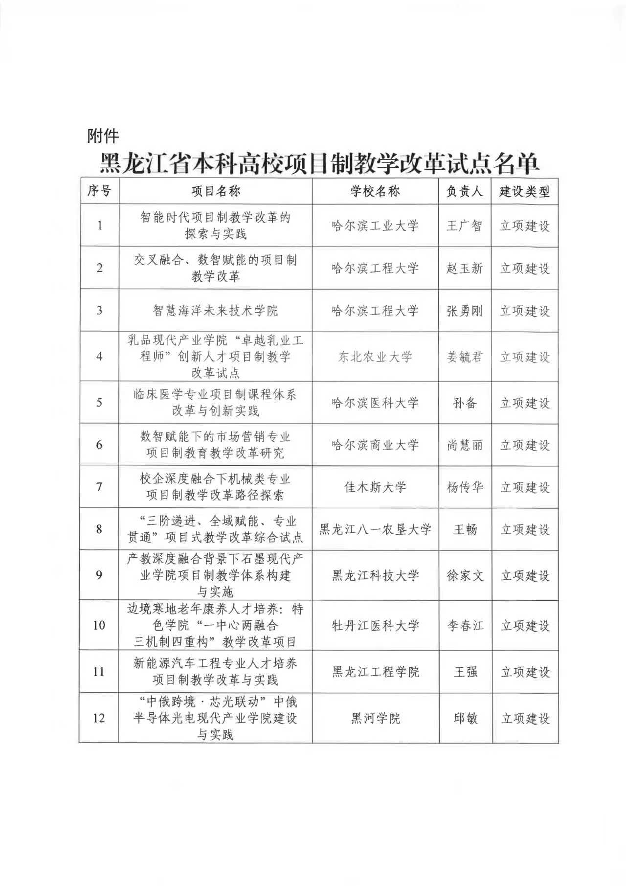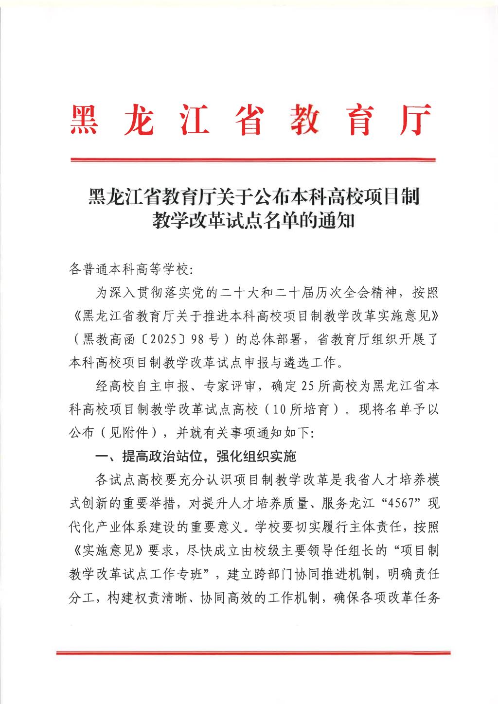 近日,黑龙江省教育厅公布了本科高校项目制教学改革试点名单,我校申报的《面向龙江玉米智能深加工产业的卓越工程师项目制培养模式创新与实践》项目成功入选。