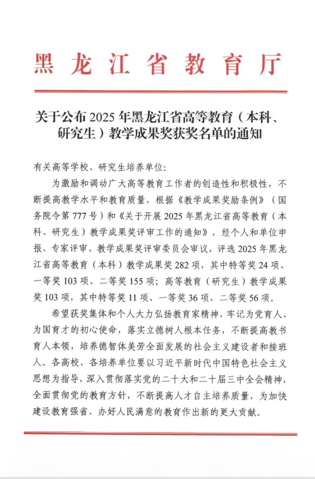 喜报:我校两项成果荣获2025年黑龙江省高等教育教学成果奖