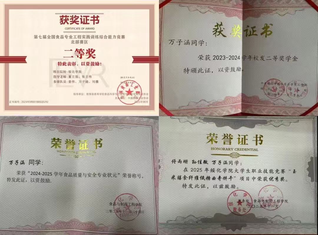 关于未来,万子涵有着清晰的规划:“我希望能继续深耕食品添加剂安全性评价领域,通过考研进一步提升科研能力。同时,我也计划尽早参与企业实习,了解行业真实需求。”对于职业生涯,她表示:“我希望未来能进入食品监管机构、第三方检测平台或科研院校,无论是守护食品安全,还是培养专业人才,我都愿意用自己的所学,为食品行业的健康发展贡献一份力量。”